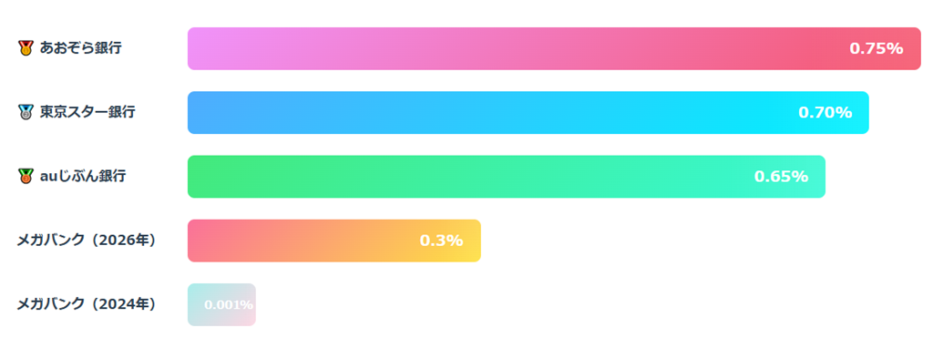 【2026年最新】日銀利上げで激変!普通預金金利ランキング|メガバンクの2.5倍を狙え