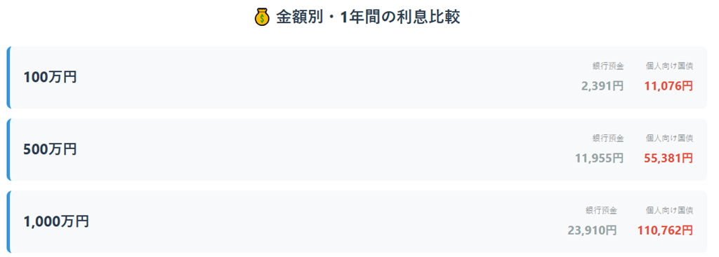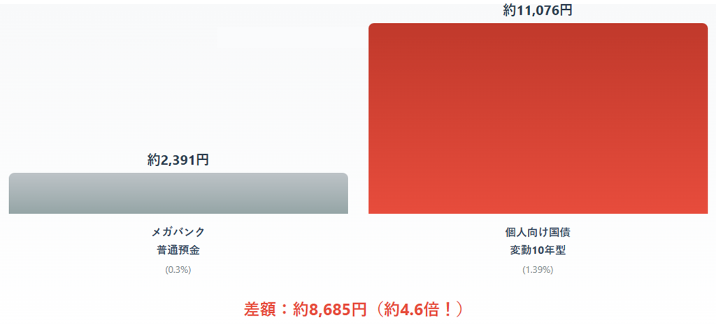 この差は非常に大きいですよね。まとまった資金がある方ほど、個人向け国債のメリットを実感できます。