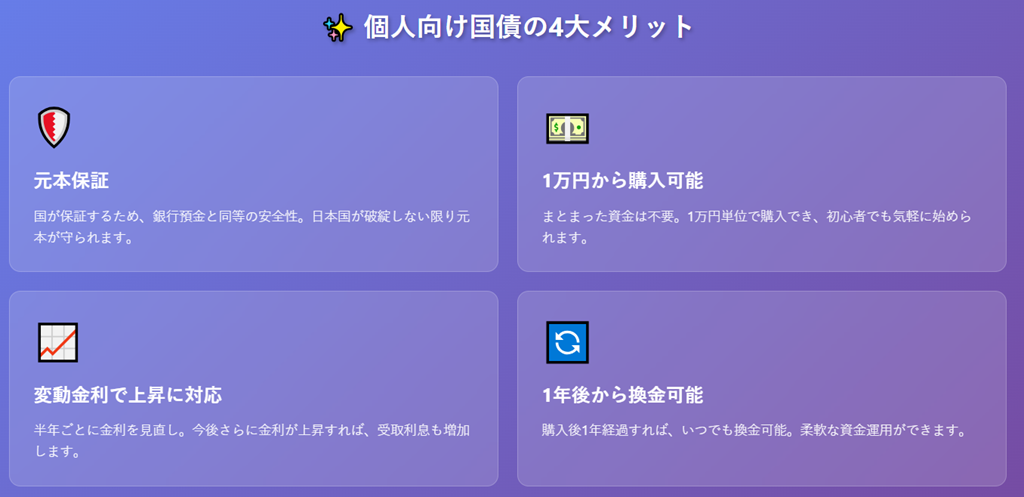 個人向け国債の4大メリット