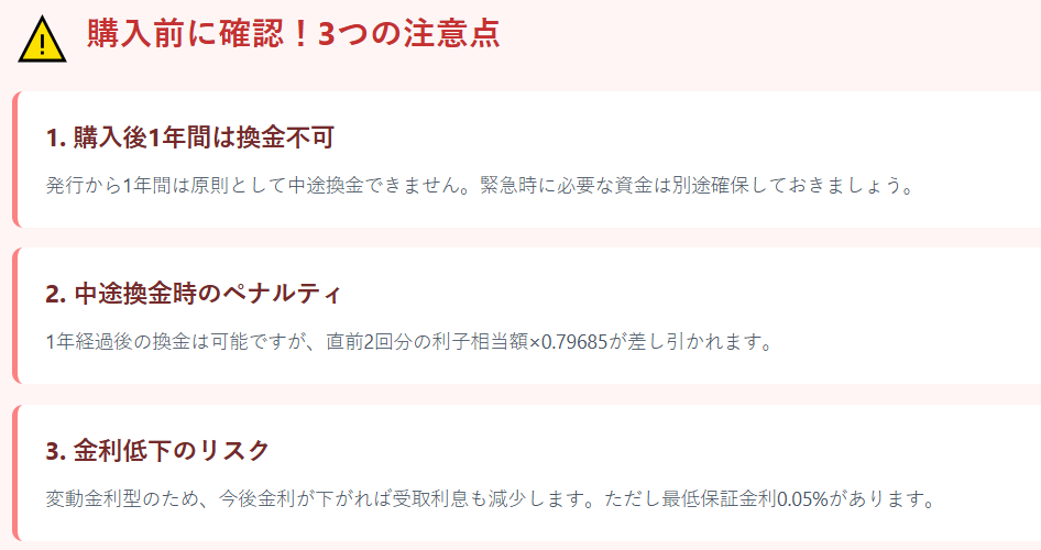 個人向け国債にも、いくつか注意すべき点があります。
